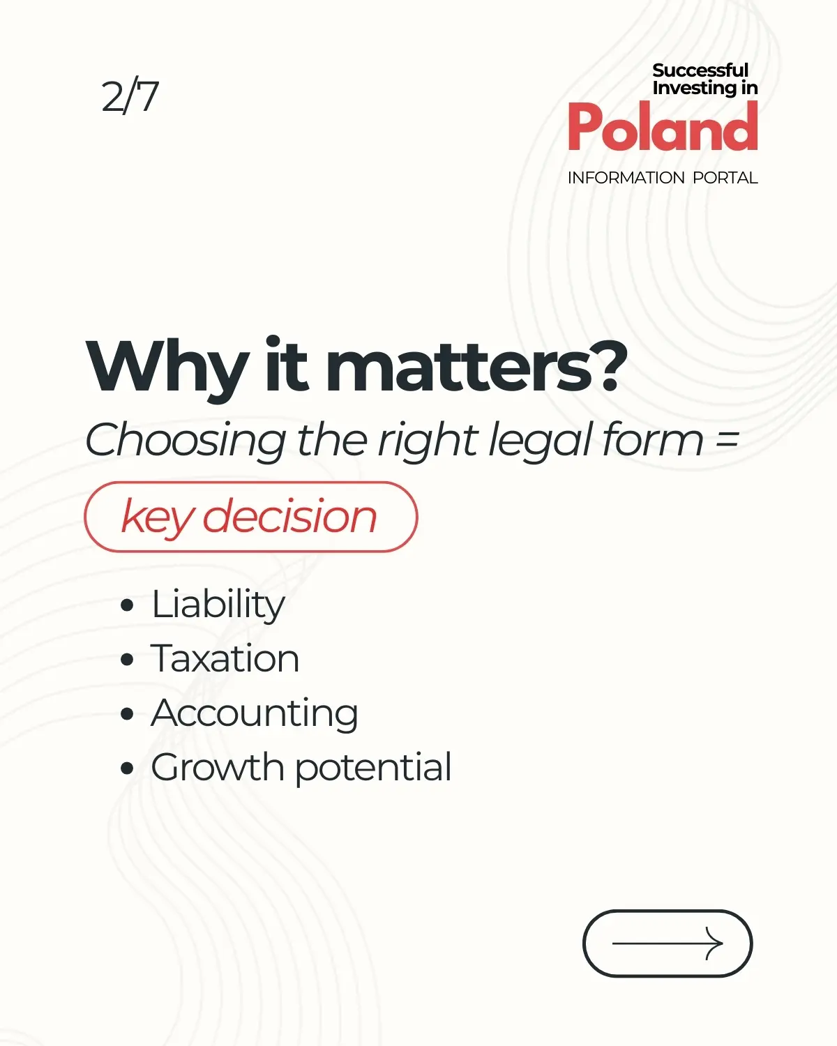 Choosing the right legal form of running a business when registering a company in Poland is a key decision for any entrepreneur, especially for foreigners looking to establish their business. This choice significantly affects how the business operates, the liability for obligations, taxation methods, and accounting responsibilities. Therefore, it is crucial to carefully analyze your business needs and capabilities before deciding on a specific legal form of business.