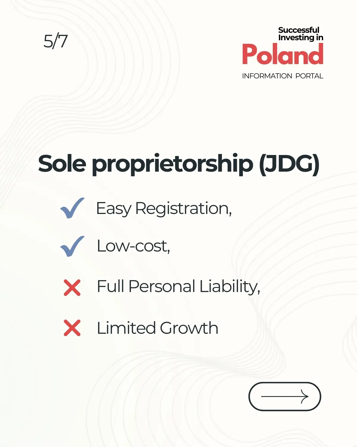 - Sole proprietorship (JDG): The simplest and most popular option for individuals wanting to operate independently.